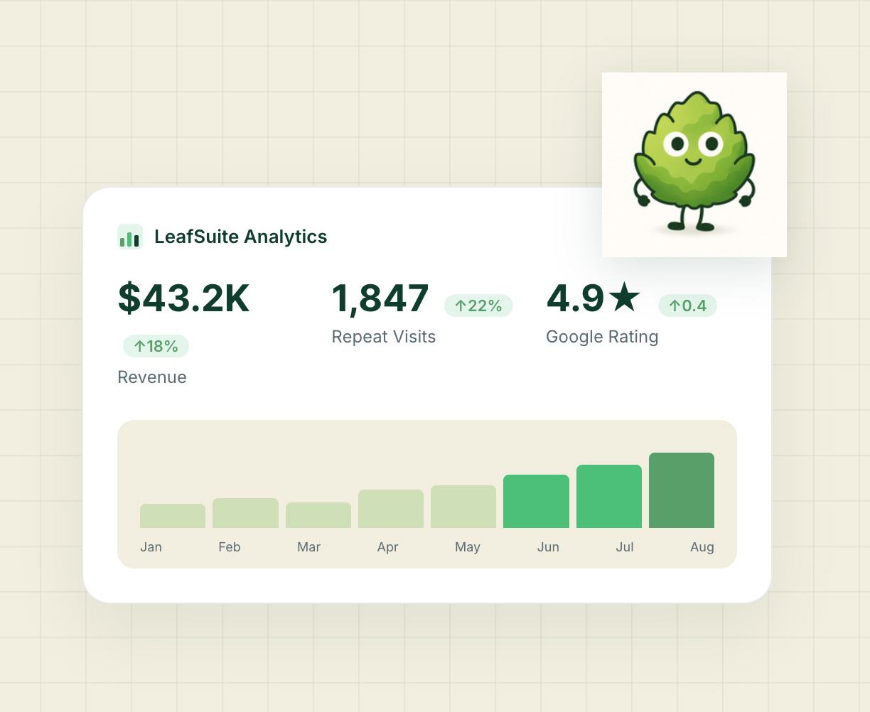 A proven growth system for $2M–$8M+ dispensaries that turns scattered marketing into consistent gains—more local search visibility, stronger retention, and revenue that compounds week after week.